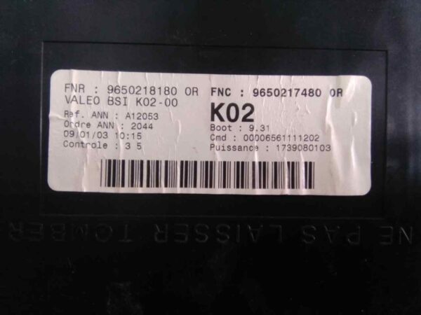 CAJA RELES / FUSIBLES para PEUGEOT 307 (S1)(04.2001) con motor NFU.. Referencia: 9650217480 – 00016-23 – . Año de la pieza: 2001.