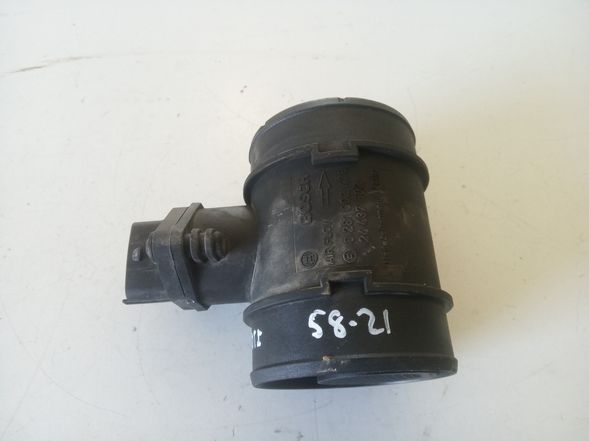 CAUDALIMETRO para OPEL ZAFIRA A con motor Y20DTH.. Referencia: 0281002478 – 00058-21 – . Año de la pieza: 2004.