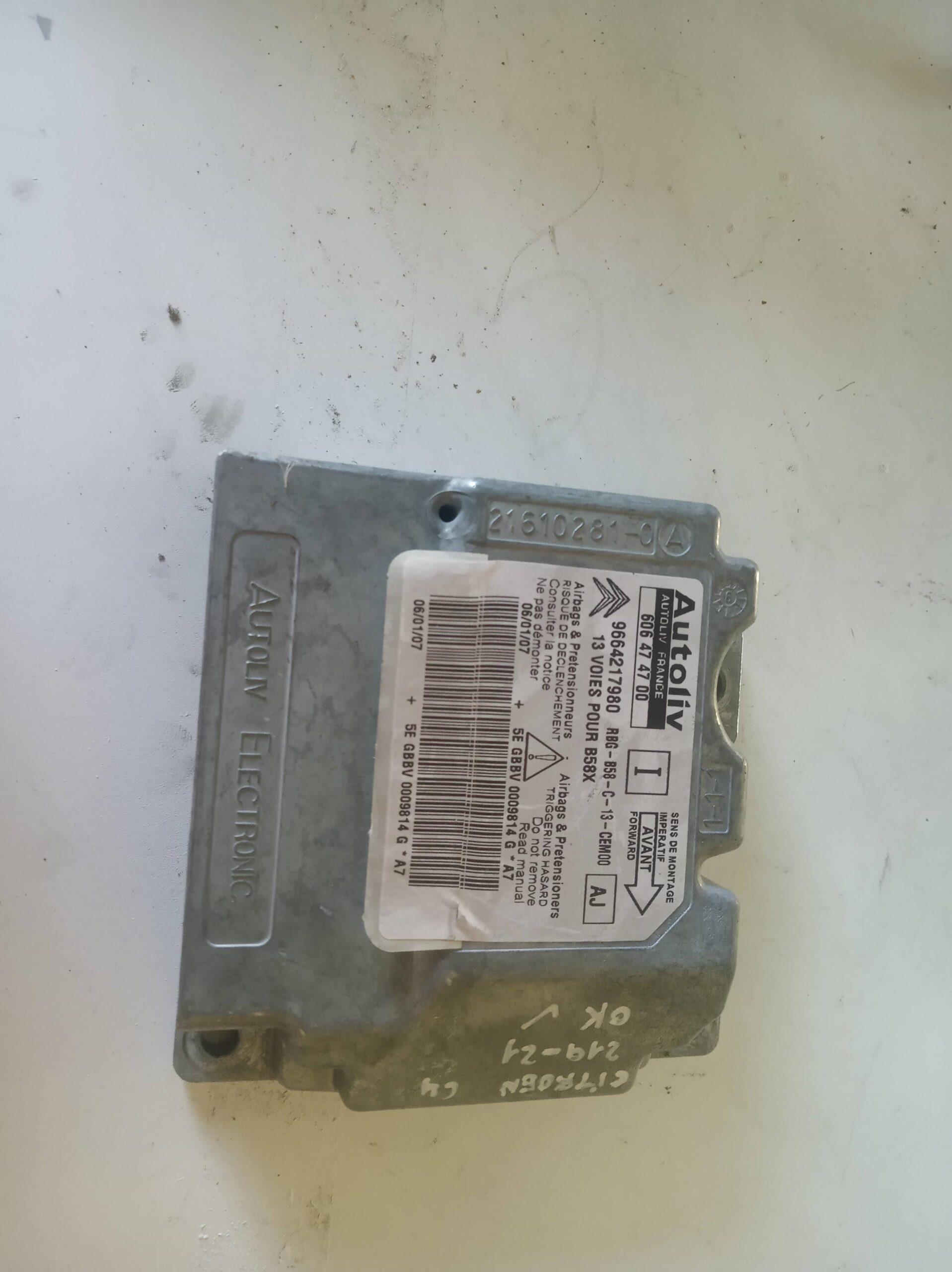 CENTRALITA AIRBAG para CITROEN C4 PICASSO con motor RHJ.. Referencia: 9664217980 – 00219-21 – . Año de la pieza: 2007.
