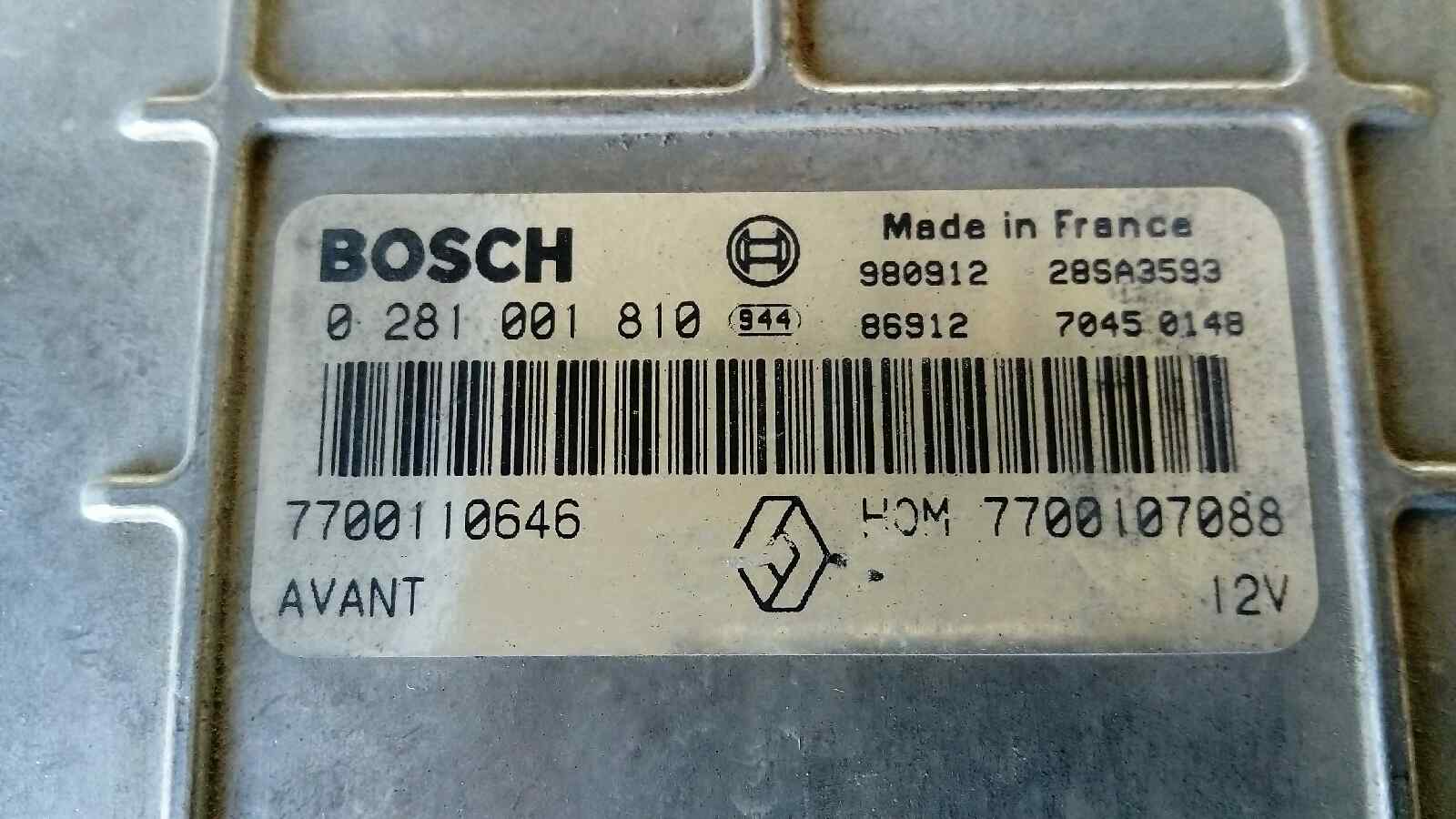 CENTRALITA MOTOR UCE para RENAULT MEGANE I CLASSIC (LA0) con motor .. Referencia: 0281001810 – – BOSCH. Año de la pieza: 1996.