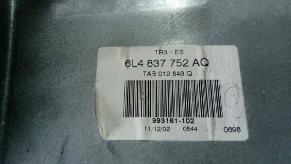 ELEVALUNAS DELANTERO DERECHO para SEAT IBIZA (6L1) con motor ATD.. Referencia: 6L4837752AQ – 00043-18 – 6L4837756 SIN MOTOR. Año de la pieza: 2003.