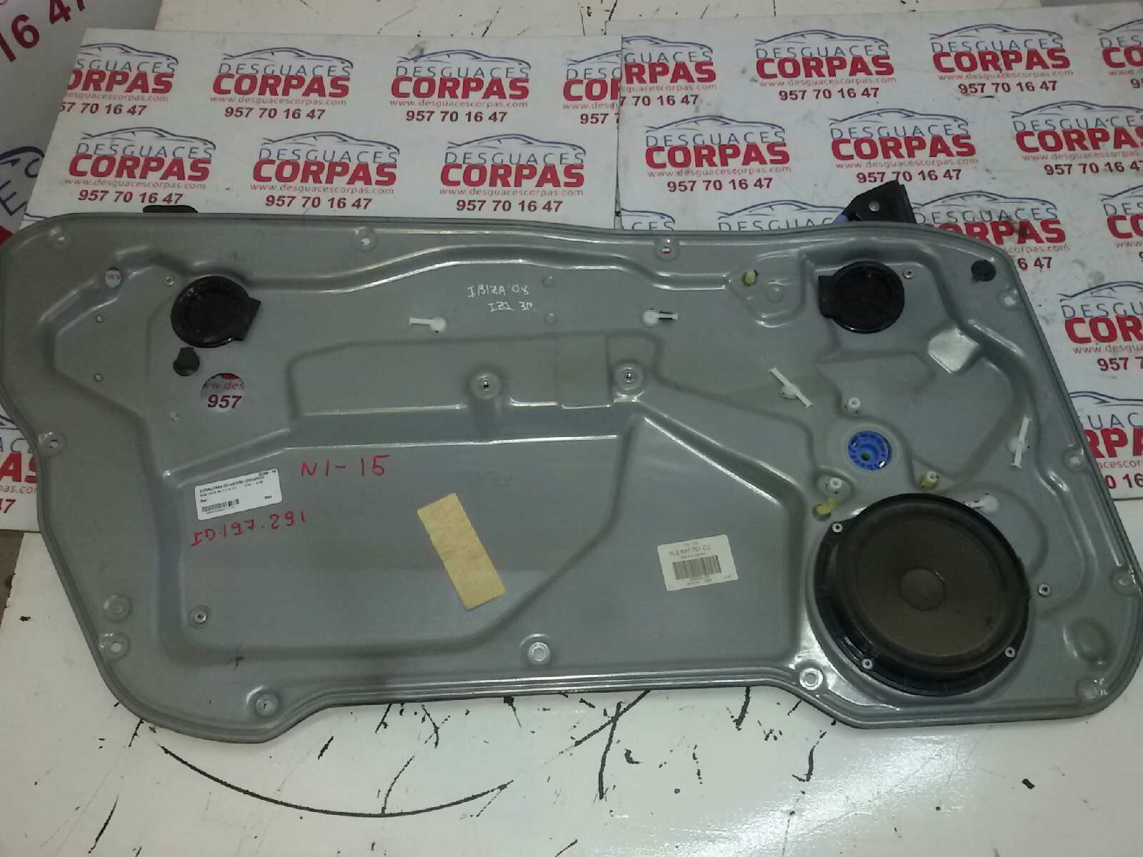 ELEVALUNAS DELANTERO IZQUIERDO para SEAT IBIZA (6L1) con motor BNV.. Referencia: 6L3837751CJ – 00306-16 – SOLO MECANISMO SIN MOTOR. Año de la pieza: 2008.
