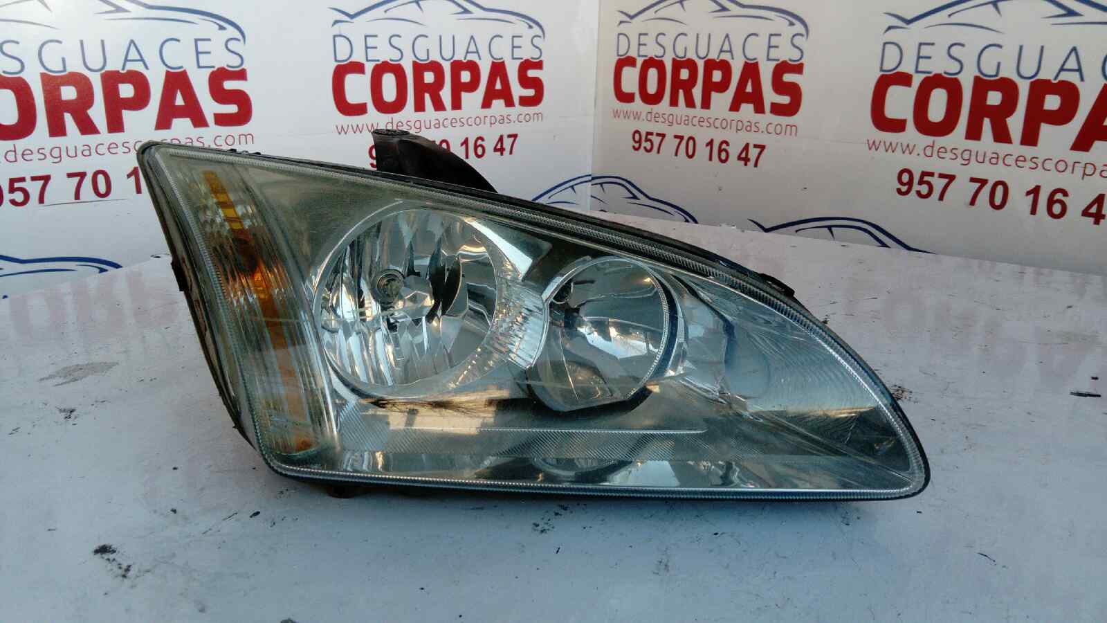 FARO DERECHO para FORD FOCUS BERLINA (CAP) con motor KKDA.. Referencia: – 00038-18 – ESTA ARAÑADO ESQUINA INFERIOR IZQUIERDA VER FOTO. Año de la pieza: 2007.