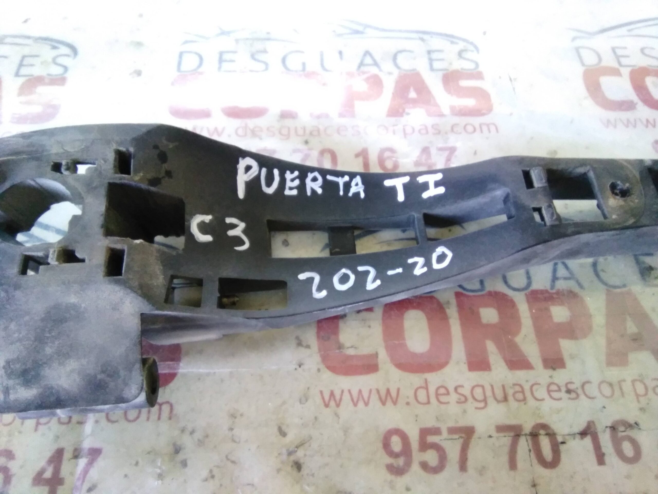 MANETA EXTERIOR TRASERA IZQUIERDA para CITROEN C3 con motor 8HX.. Referencia: 9650444480 – 00202-20 – PARTE INTERIOR. Año de la pieza: 2003.