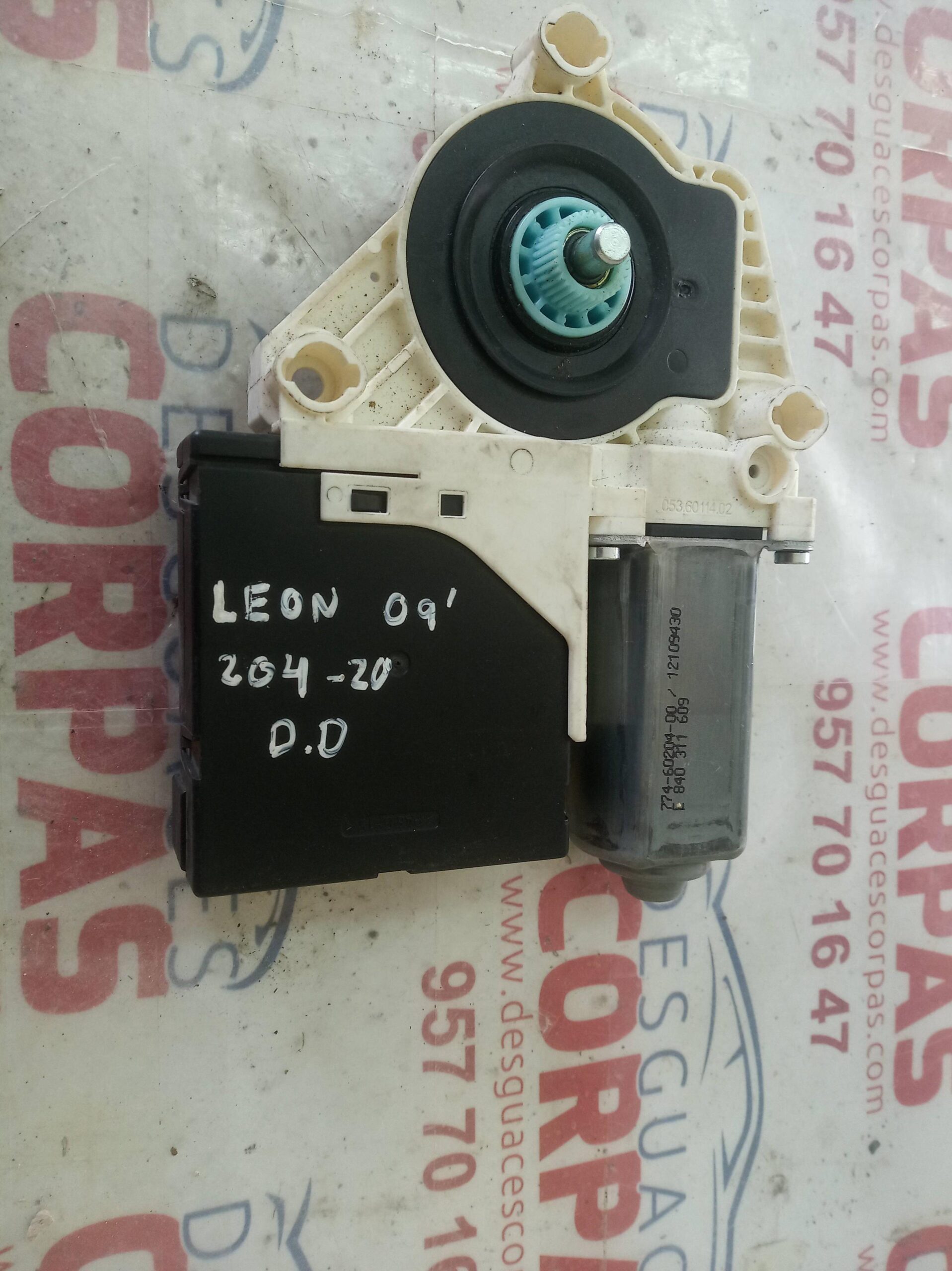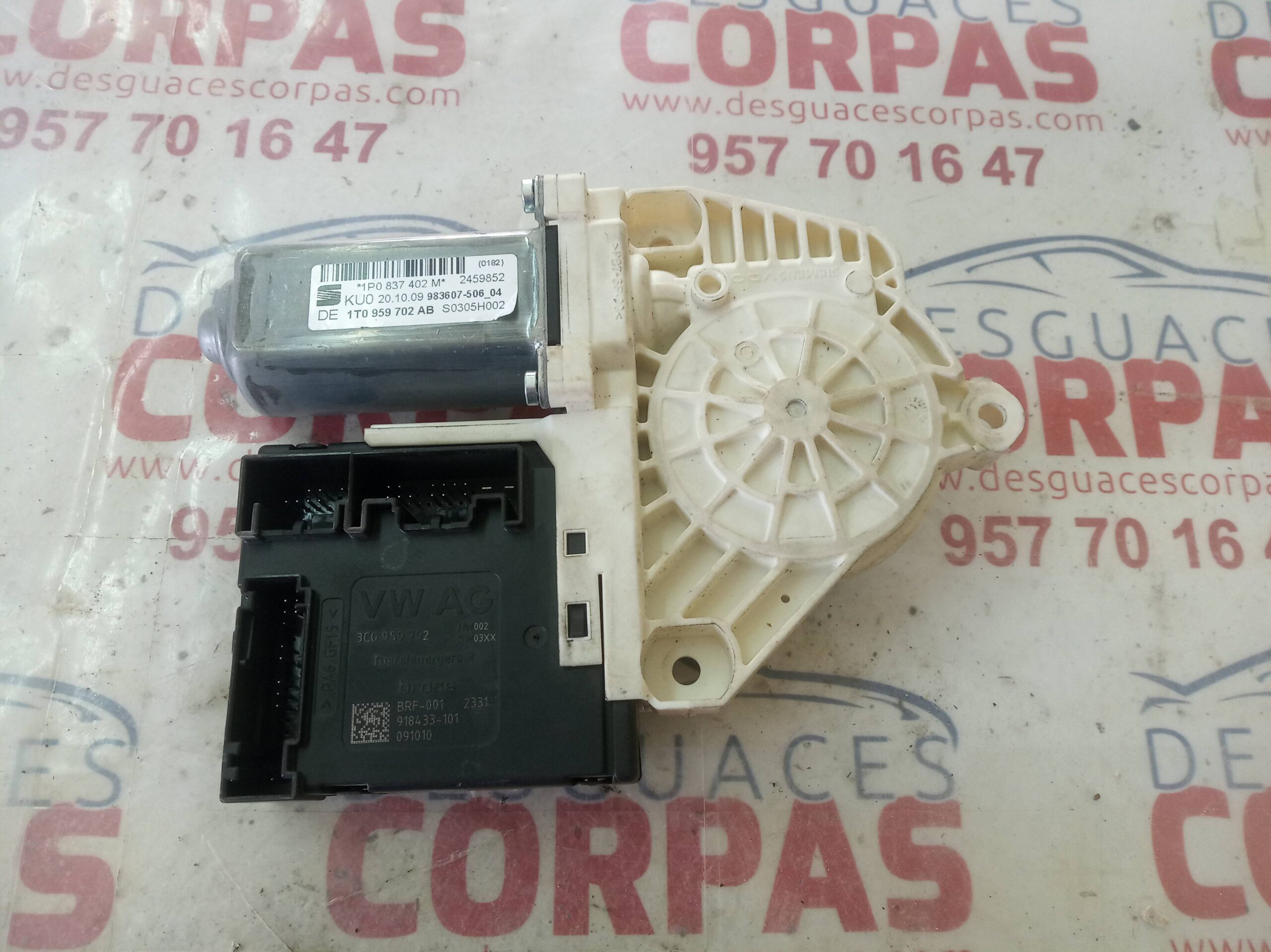 MOTOR ELEVALUNAS DELANTERO DERECHO para SEAT LEON (1P1) con motor BXF.. Referencia: 1P0837402M – 00204-20 – 98360750604 918433101. Año de la pieza: 2009.