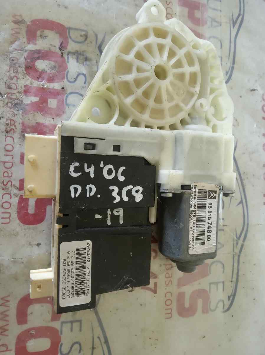 MOTOR ELEVALUNAS DELANTERO DERECHO para CITROEN C4 BERLINA con motor 9HX.. Referencia: 9681574880 – 00368-19 – . Año de la pieza: 2007.