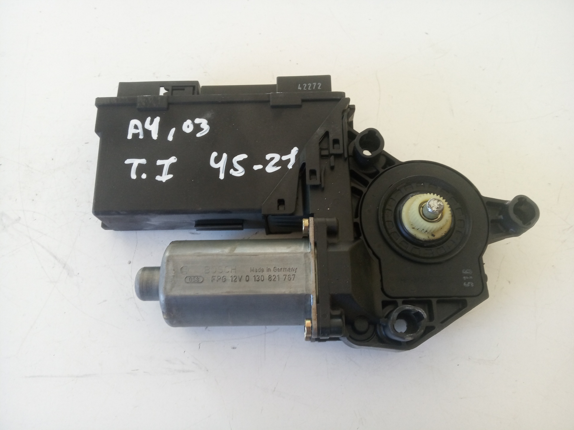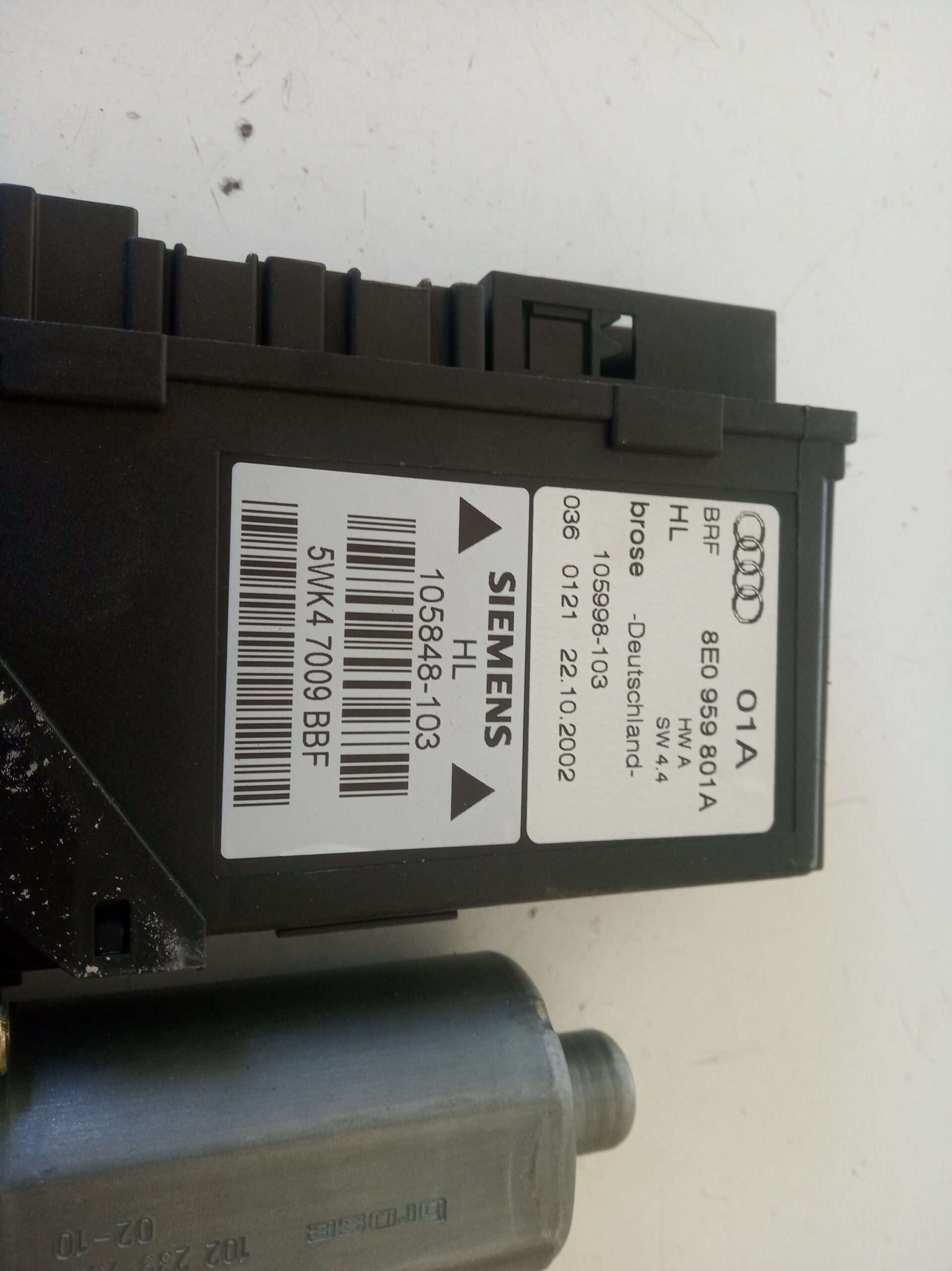 MOTOR ELEVALUNAS TRASERO IZQUIERDO para AUDI A4 AVANT (8E) con motor BFC.. Referencia: 8E0959801A – 00045-21 – . A?o de la pieza: 2002.