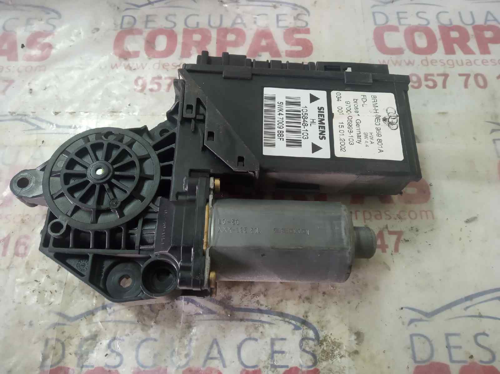 MOTOR ELEVALUNAS TRASERO IZQUIERDO para AUDI A4 AVANT (8E) con motor AYM.. Referencia: 9700105993103 – 00377-17 – 130821767. Año de la pieza: 2002.