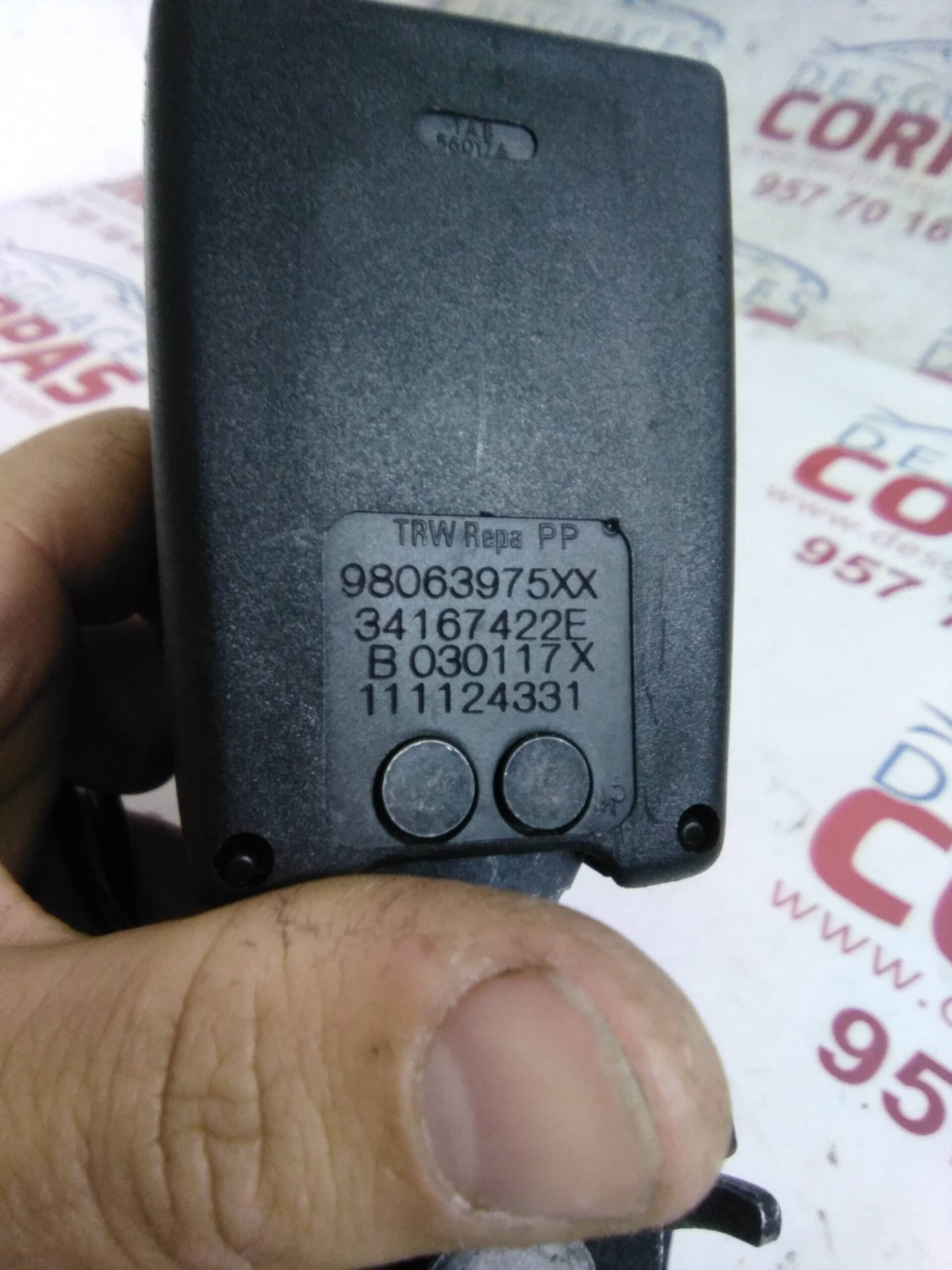 NO IDENTIFICADO para PEUGEOT 308 con motor BHY.. Referencia: 98063975 – 00482-20 – ANCLAJE CINTURON TRASERO. Año de la pieza: 2017.