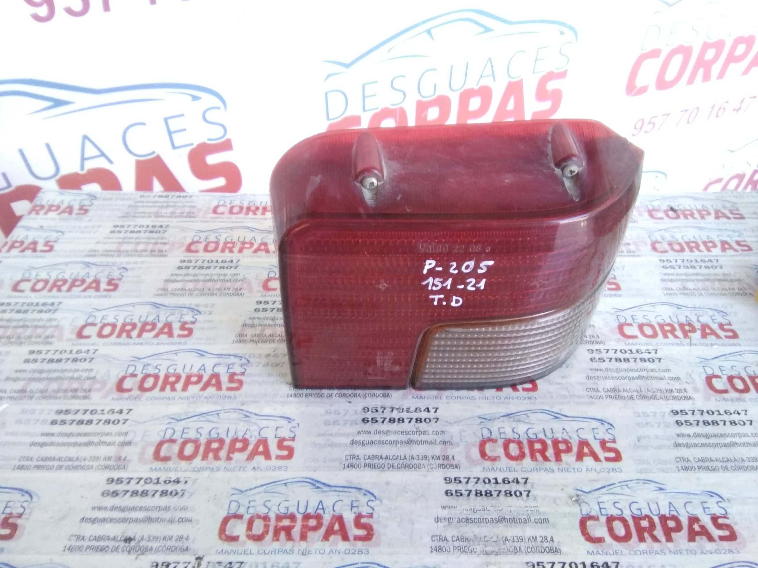 PILOTO TRASERO DERECHO para PEUGEOT 205 BERLINA con motor H1A.. Referencia: – 00151-21 – . Año de la pieza: 1950.
