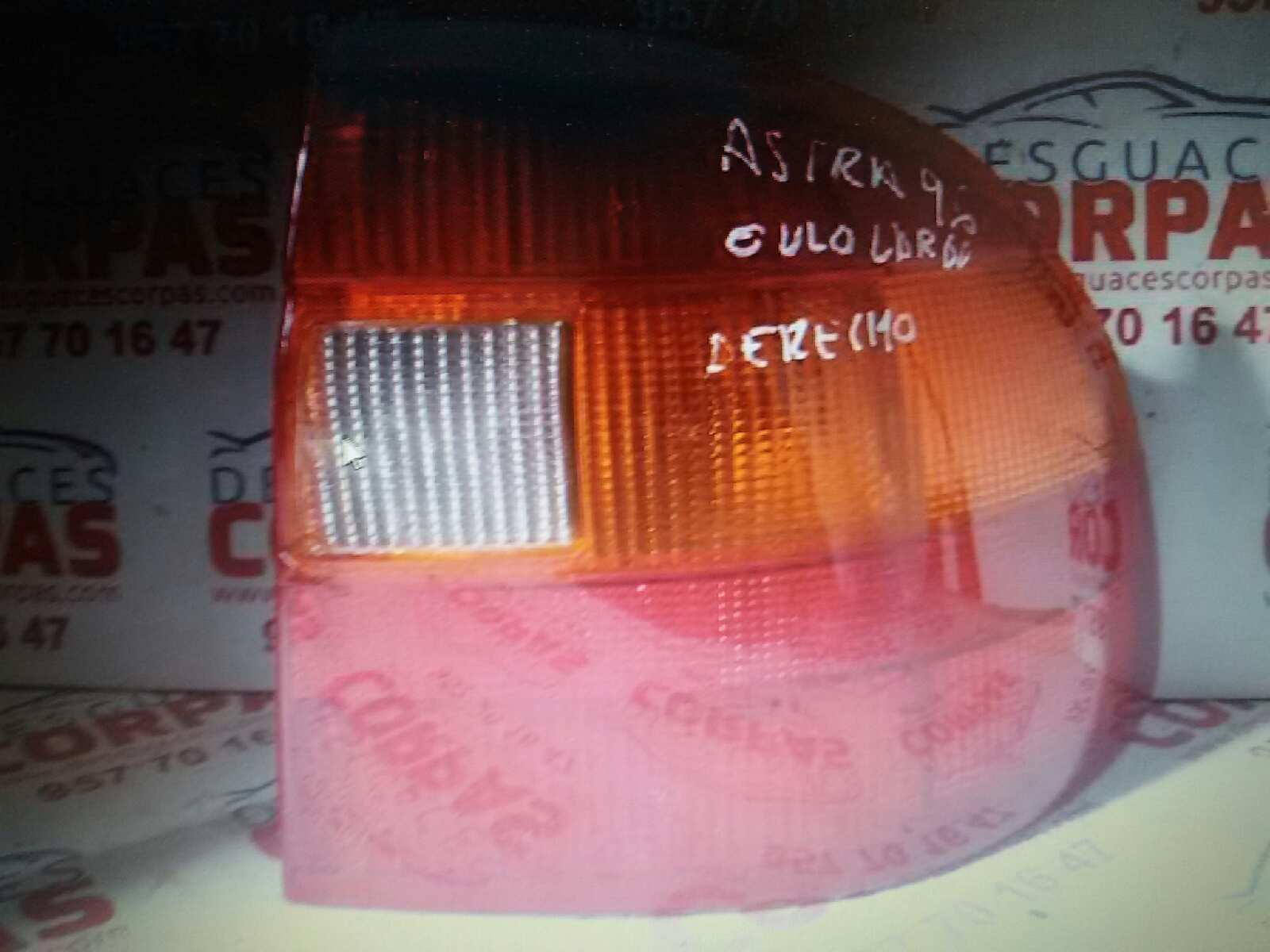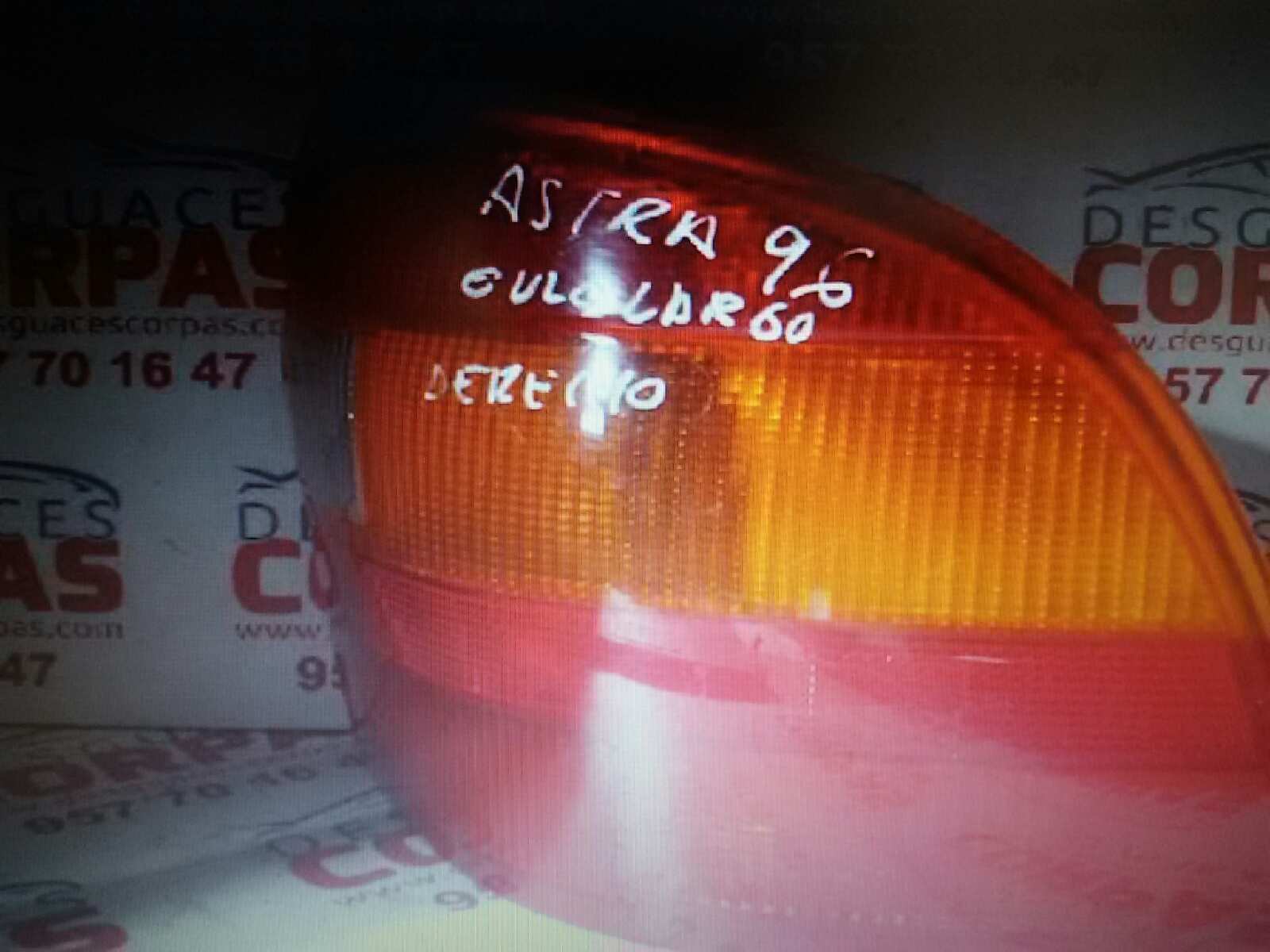 PILOTO TRASERO DERECHO para OPEL ASTRA F BERLINA con motor .. Referencia: – – INTERMITENTE COLOR AMBARY MARCHA ATRAS BLANCO VER FOTOS. Año de la pieza: 1991.