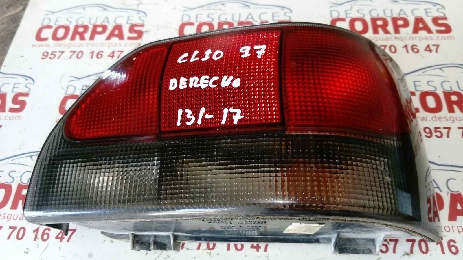 PILOTO TRASERO DERECHO para RENAULT CLIO I FASE I / II (B/C57) con motor EJJ.. Referencia: 89306980 – 00131-17 – TIENE UNA FISURA VER FOTOS. Año de la pieza: 1998.