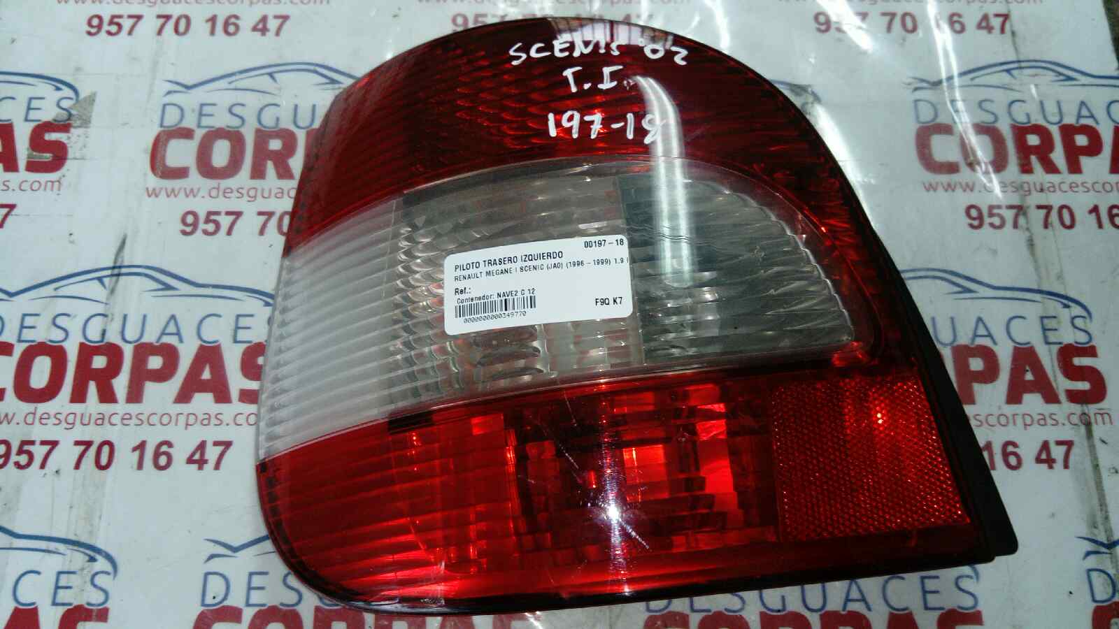 PILOTO TRASERO IZQUIERDO para RENAULT MEGANE I SCENIC (JA0) con motor F9Q K7.. Referencia: 7702428054 – 00197-18 – . Año de la pieza: 2002.
