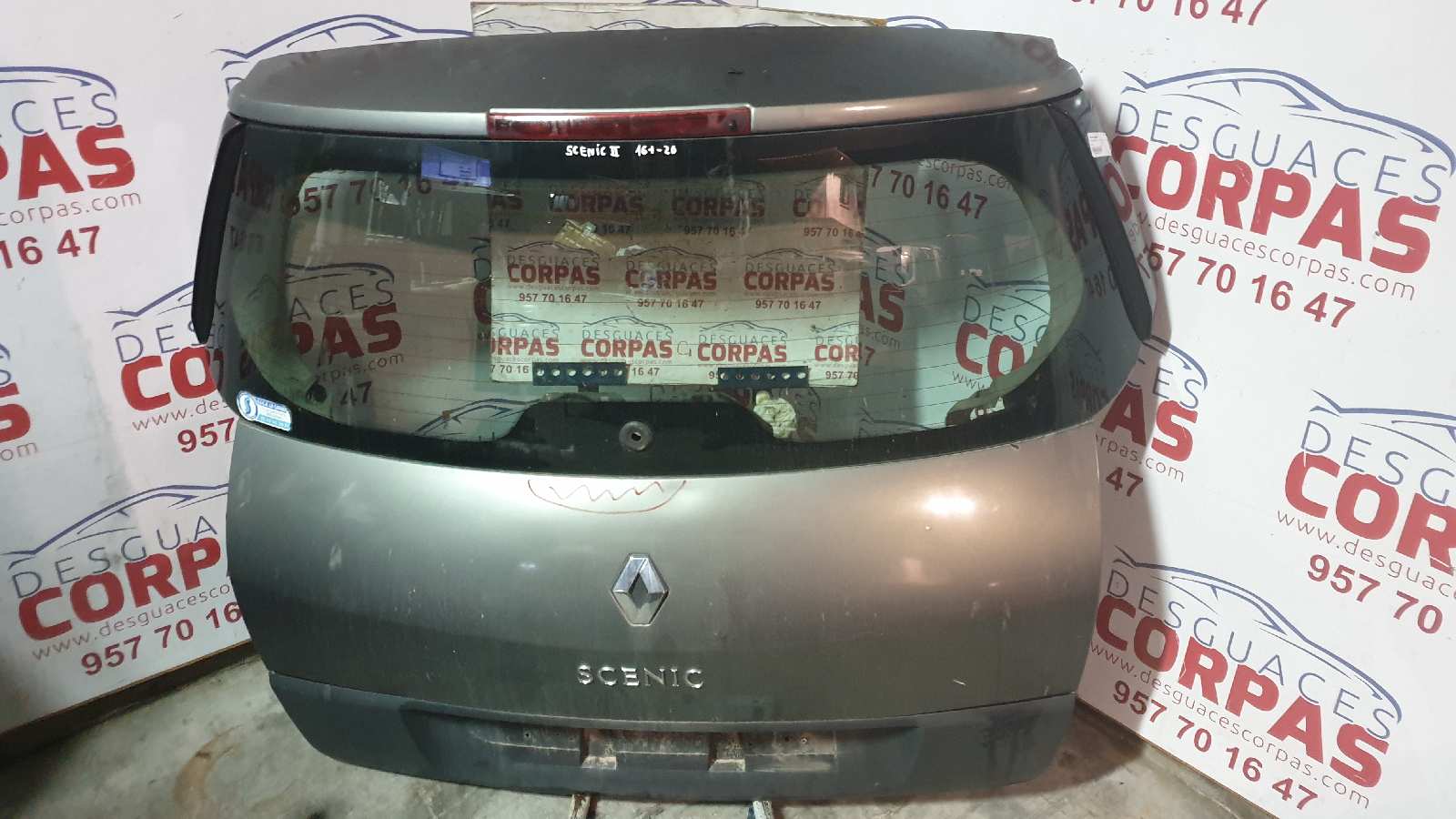 PORTON TRASERO para RENAULT SCENIC II (JM) con motor F9QD812.. Referencia: – 00161-20 – TIENE UNA ABOLLADURA ENCINA DEL ANAGRAMA. A?o de la pieza: 2003.