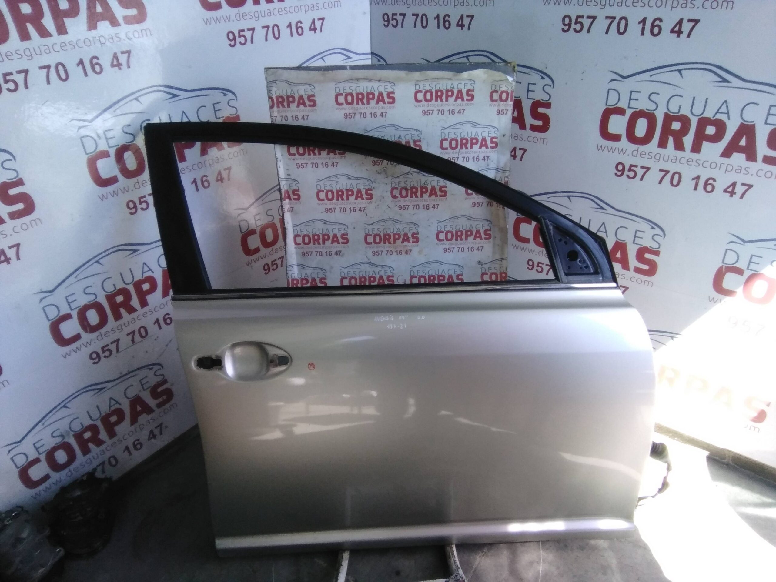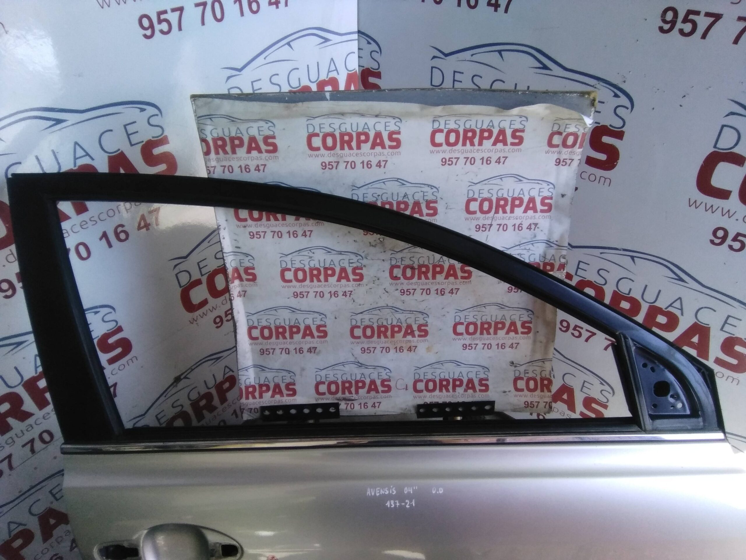 PUERTA DELANTERA DERECHA para TOYOTA AVENSIS BERLINA (T25) con motor 1CDFTV.. Referencia: – 00137-21 – TIENE UN PEQUEÑO PICOTAZO HACIA FUERA VER FOTOS. Año de la pieza: 2005.