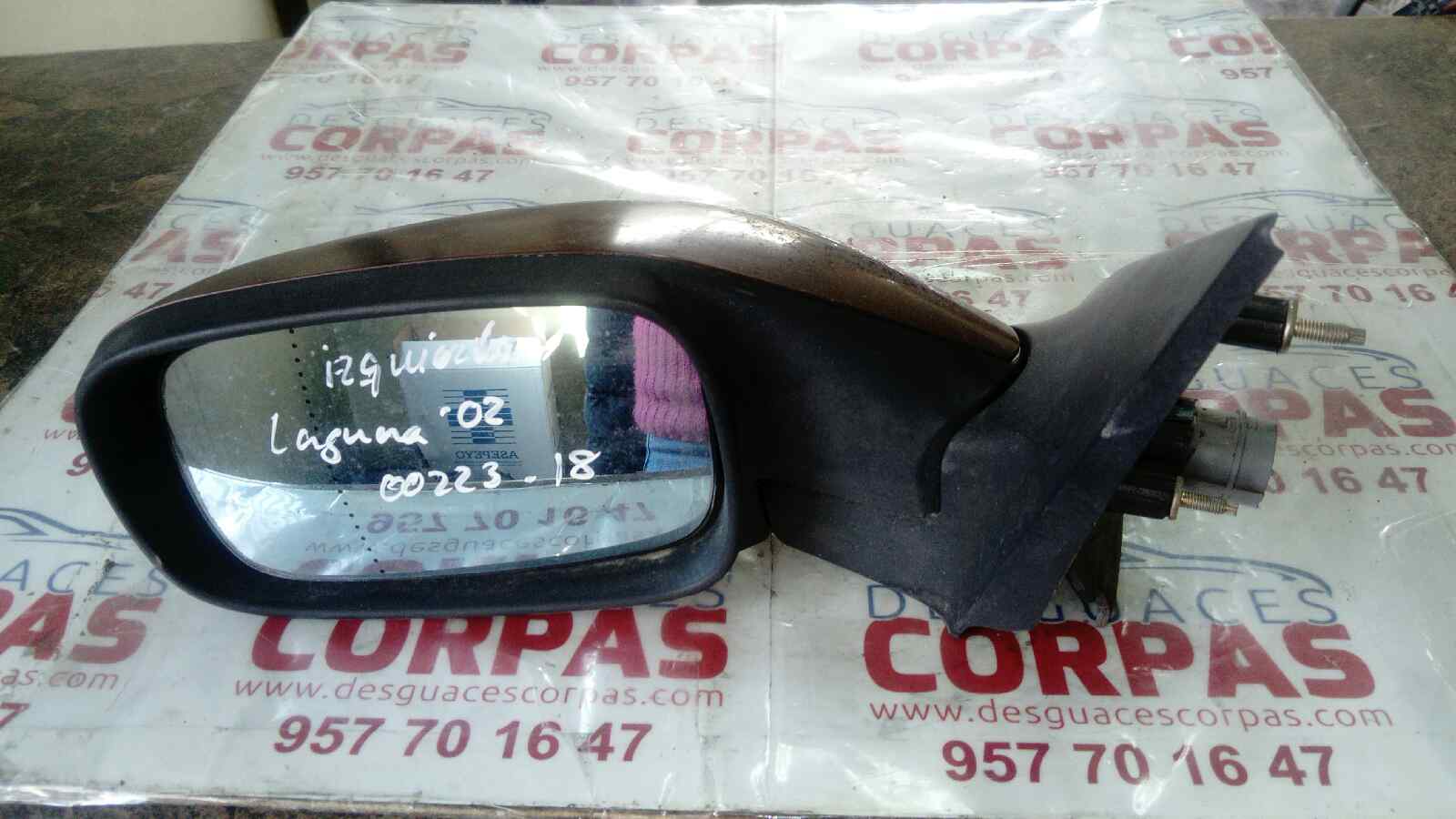 RETROVISOR IZQUIERDO para RENAULT LAGUNA II (BG0) con motor F9QC7.. Referencia: – 00223-18 – . Año de la pieza: 2001.